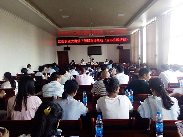 接着,三位讲师在镇会议室正式召开了《江西省农业大讲堂下基层宣讲活动》。全镇镇、村干部、第一书记参加了宣讲活动。在宣讲活动上,三位宣讲员重点宣讲了三个方面的内容:一是习近平总书记的“三农”思想和对江西省“三农”工作的战略要求;二是省委省政府贯彻落实乡村振兴战略的总体要求;三是针对农业生产存在的问题和农民需求,开展“点单式”农业技术培训服务。并根据澄塘基层农业发展的实际情况,提出了一些建设性的建议。